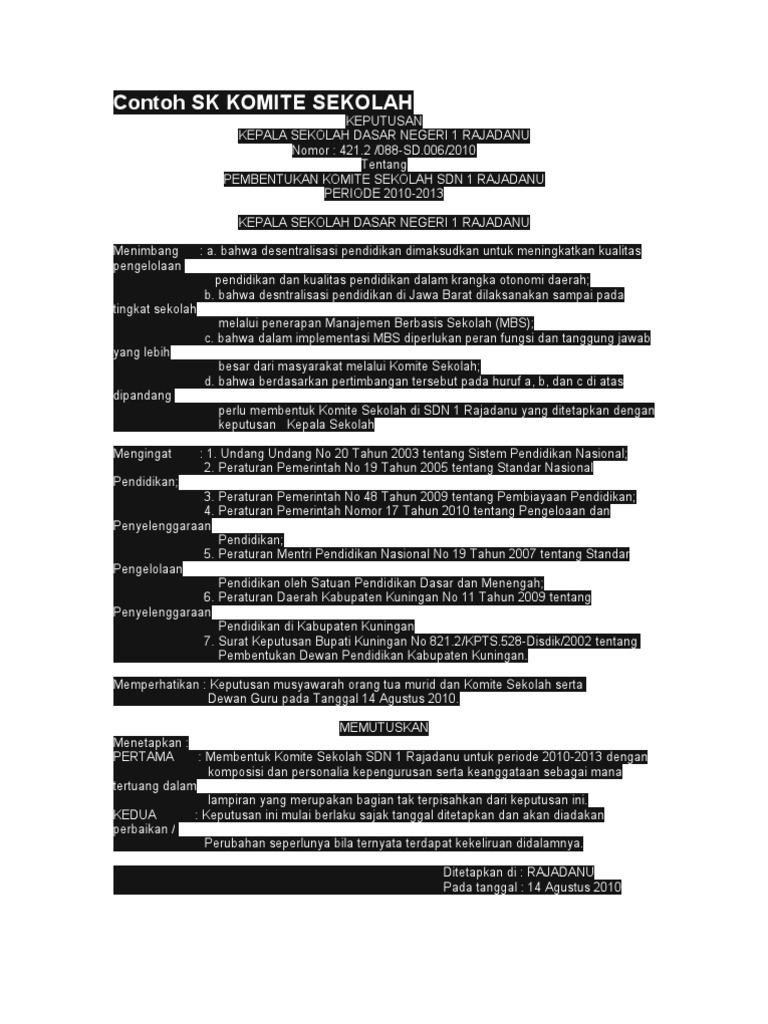 Surat keputusan kepala sekolah dasar negeri nomor 001 kasikan kecamatan tapung hulu. Komite sekolah sumbangan bantuan dan pungutan. Demikian yang bisa kami sampaikan mengenai keterangan berkas dan share file contoh sk komite sekolah sd smp sma smk format microsoft word.