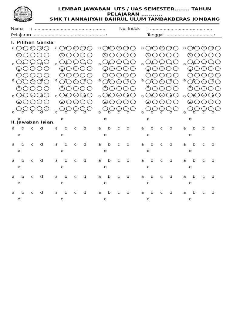 Contoh Lembar Jawaban Uts Us Atau Uas Idnoffice